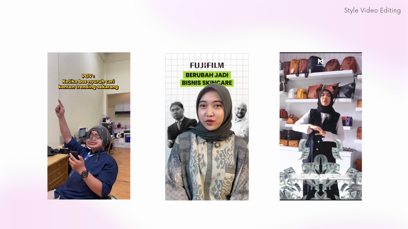 Gaya editing fleksibel & sesuai niche — lifestyle, edukasi, beauty, tech, atau bisnis, semua bisa disesuaikan.